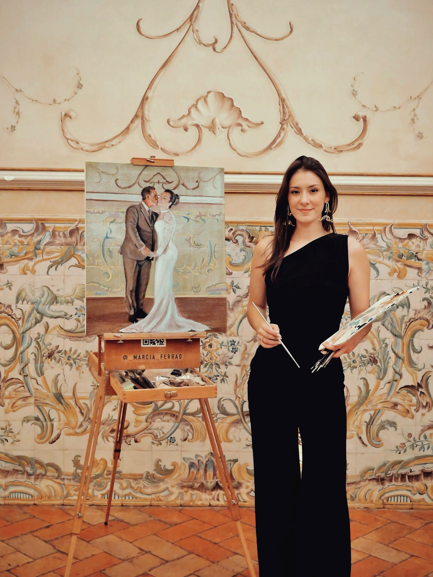 My name is Márcia Ferrão, I am a painter, with a bachelor degree from Faculty of Fine Arts of Lisbon and I make live paintings at weddings. I travel throughout the world with the sole mission of providing a unique experience for your guests and creating irreplaceable works of art. The celebration of love will always be a cause that moves me, specially if I can capture it and portray it in colour. Here, you will be guaranteed to take with you a work of art that will last a lifetime.
